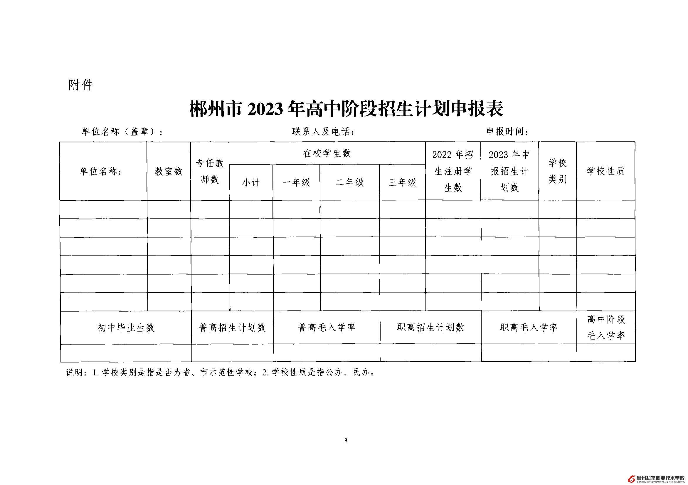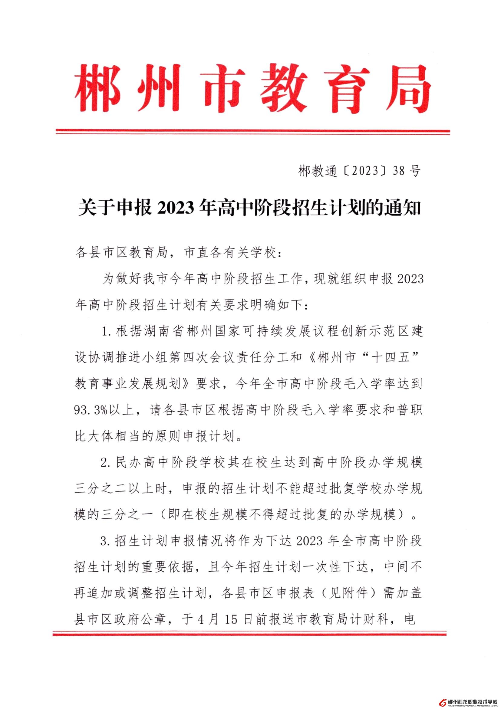 关于申报2023年高中阶段招生计划的通知